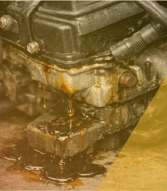 Manchas no chão da garagem indicando perda de fluidos do motor.
